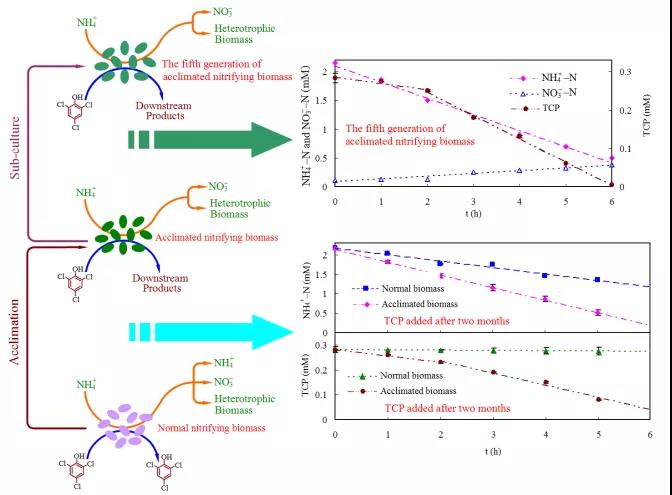 上海师范大学张永明教授团队与美国工程院院士,亚利桑那州立大学环境生物技术中心主任Bruce E. Rittmann教授合作在市政污水处理领域研究取得重要进展,发现经过生物驯化后的硝化污泥对有毒污染物2,4,6-三氯酚(2,4,6-TCP)具有“记忆力”,且该“记忆力”可以“遗传”至后续生长出的硝化污泥。